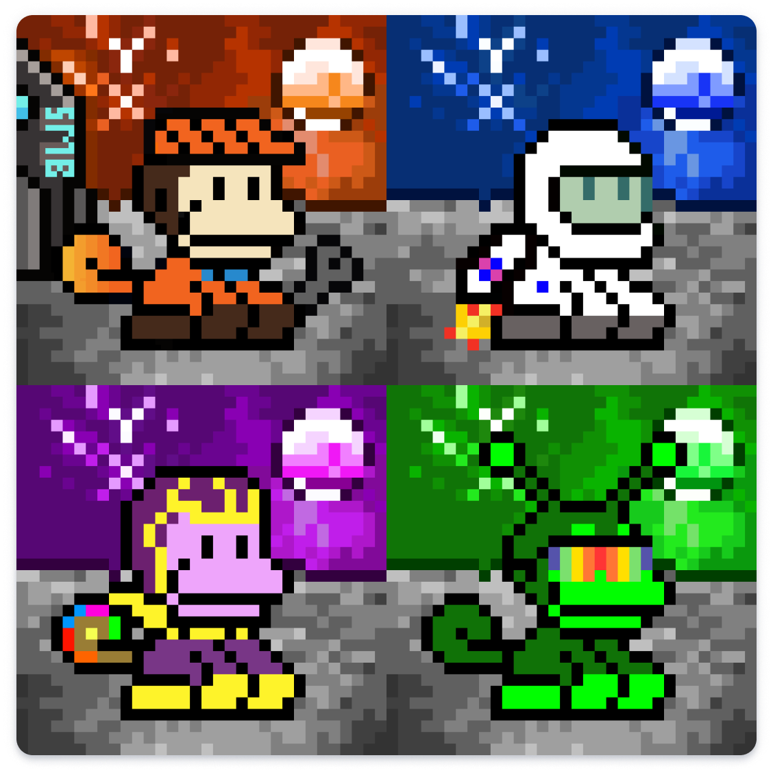 SMB Gen1 is a collection of 4 different space-themed monke NFTs, each with a limited supply. Holding the whole collection